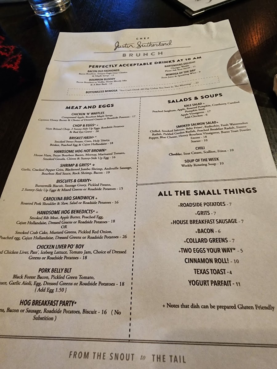 The brunch selection is nothing short of exceptional as well. Guests rave about the Brisket Hash and mouthwatering Handsome Hog Benedict that features apple butter as a standout touch. You won’t want to miss out on the Crab Cake for $9 or sumptuous Sausage Gravy for just $4. Every bite is designed to please, making it a memorable start to your day.